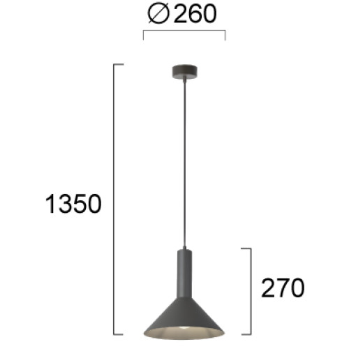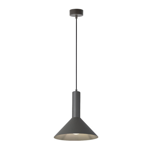 Modern pendant lamp from the series Ritmo, made of a metal base and a conical metal shade in dark grey colour. Hanging lamp, suitable for comfortable lighting in your living room, dining room, bedroom, hotel and restaurant.