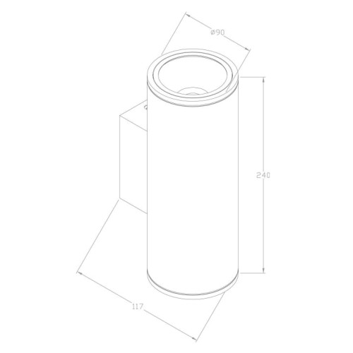 Размери: Диаметър: 90мм, Височина: 240мм, Разстояние от стената: 117мм