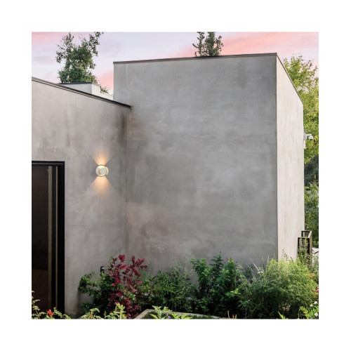 Стилен фасаден аплик с висока степен на влагозащита: IP65, изработен от бял мат цвят кръгло алуминиево тяло с прозрачен поликарбонатен разсейвател. Оригинално решение за външното осветление на фасадата, входната врата, верандата и терасата на вашия дом, вила и хотел.