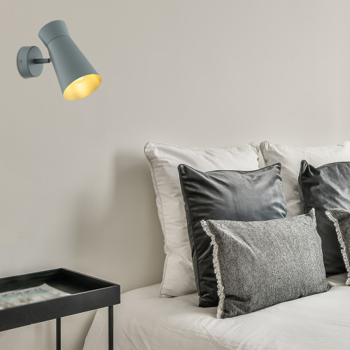 Модерен аплик с функционален дизайн от серията Lord, изработен от син цвят кръгла метална основа с рамо и подвижна метална чашка. Стилно дизайнерско решение за комфортното осветление на вашата спалня, хол, офис, хотел и заведение.