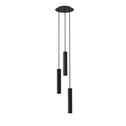 Елегантен пендел с модерен дизайн от серията Baton, изработен от черен цвят кръгла стоманена основа и три висящи на различна височина черни стоманени чашки в цилиндрична форма. Оригинално предложение за осветлението на вашия хол, трапезария, спалня, хотел и заведение.