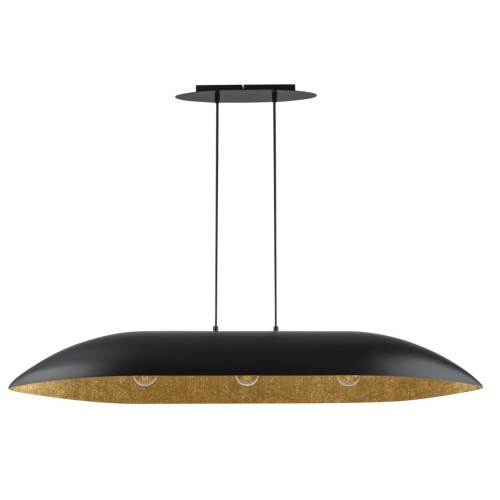 Оригинален пендел от серията Gondola, изработен от черен цвят стоманена основа и елегантна форма шапка от смола в черен цвят отвън с текстурирана вътрешност в златист цвят. Стилно решение за модерното осветление във вашия хол, трапезария, спалня, хотел и заведение.
