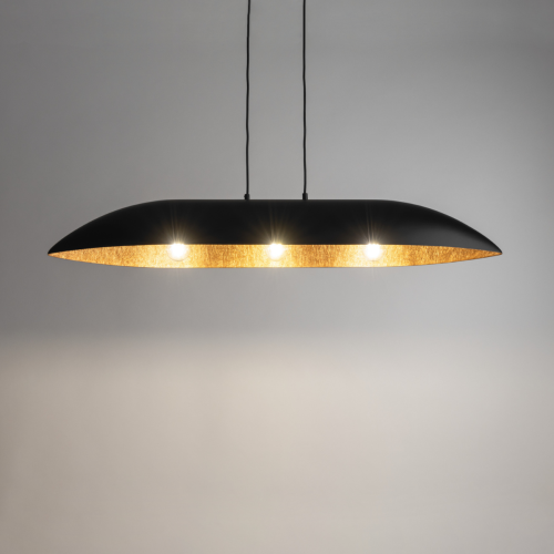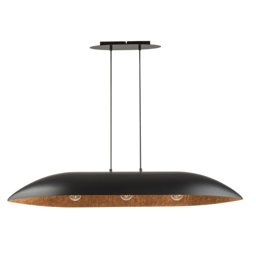 Оригинален пендел от серията Gondola, изработен от черен цвят стоманена основа и елегантна форма шапка от смола в черен цвят отвън с текстурирана вътрешност в цвят мед. Стилно решение за модерното осветление във вашия хол, трапезария, спалня, хотел и заведение.