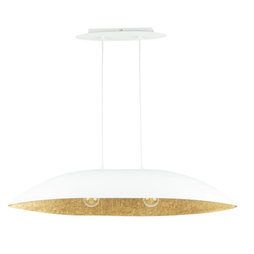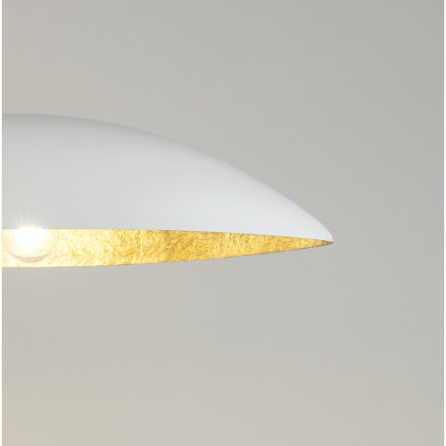 Оригинален пендел от серията Gondola, изработен от бял цвят стоманена основа и елегантна форма шапка от смола в бял цвят отвън с текстурирана вътрешност в златист цвят. Стилно решение за модерното осветление във вашия хол, трапезария, спалня, хотел и заведение.