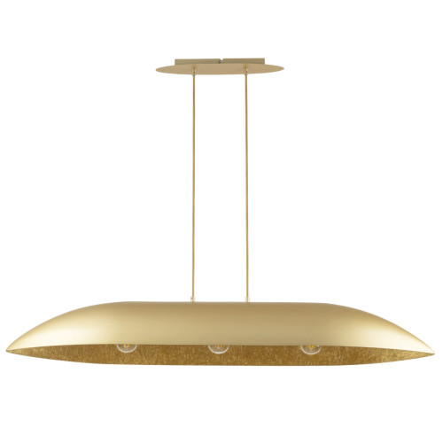 Оригинален пендел от серията Gondola, изработен от златист цвят стоманена основа и елегантна форма шапка от смола с текстурирана вътрешност в златист цвят. Стилно решение за модерното осветление във вашия хол, трапезария, спалня, хотел и заведение.