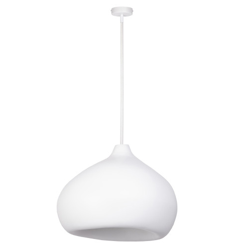 Оригинален пендел от серията Mauro, изработен от кръгла стоманена основа и асиметрична куполовидна шапка от минерален композит в бял цвят. Модерна висяща лампа, която ще изпълни с комфорт и мека светлина вашия хол, трапезария, спалня, хотел и заведение.