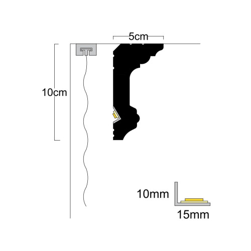 Профилът за корниз модел LD-16, създава изключителен и иновативен ефект в интериора, светещ с монтаж..