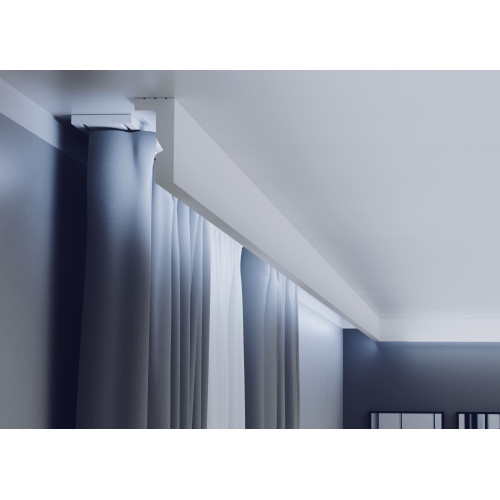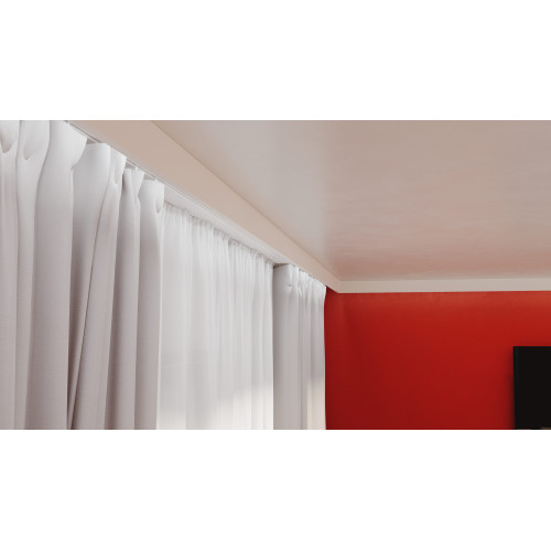 Изчистената архитектурна форма на профилите прикрива релсите и техническите елементи, като създава завършен и подреден интериорен облик. Благодарение на по-широката монтажна площ, профилите се монтират по-лесно и стабилно, без риск от огъване, което ги прави идеално решение за пространства с пердета от пода до тавана, където детайлите и чистите линии са от ключово значение.