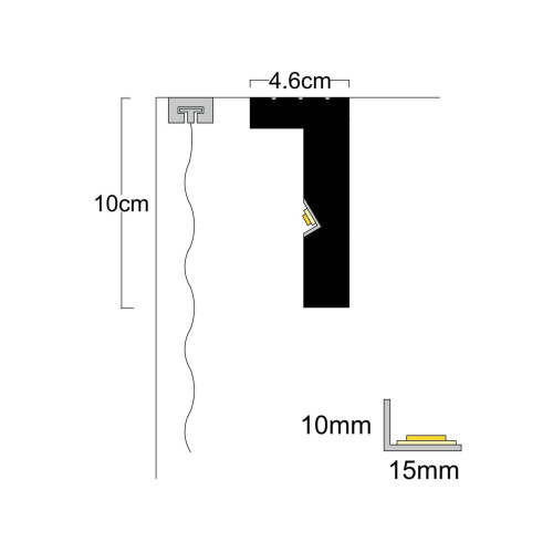 Профилът за пред перде за светодиодно осветление модел P-06 е архитектурен LED профил за пердета на ..