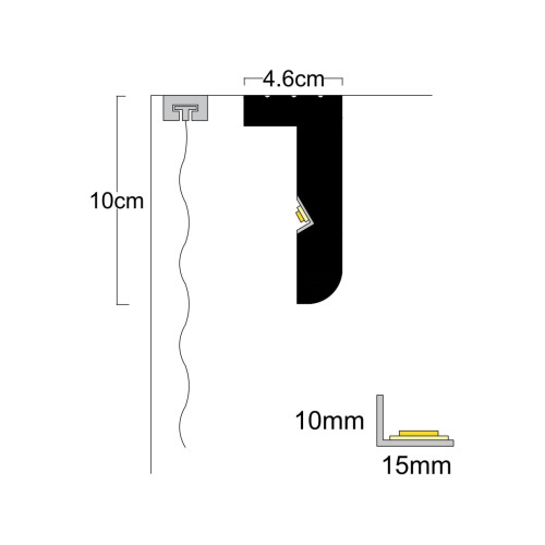 Профилът за пред перде за светодиодно осветление модел P-06 е архитектурен LED профил за пердета на ..