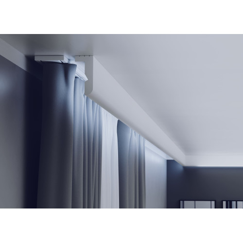 Изчистената архитектурна форма на профилите прикрива релсите и техническите елементи, като създава завършен и подреден интериорен облик. Благодарение на по-широката монтажна площ, профилите се монтират по-лесно и стабилно, без риск от огъване, което ги прави идеално решение за пространства с пердета от пода до тавана, където детайлите и чистите линии са от ключово значение.