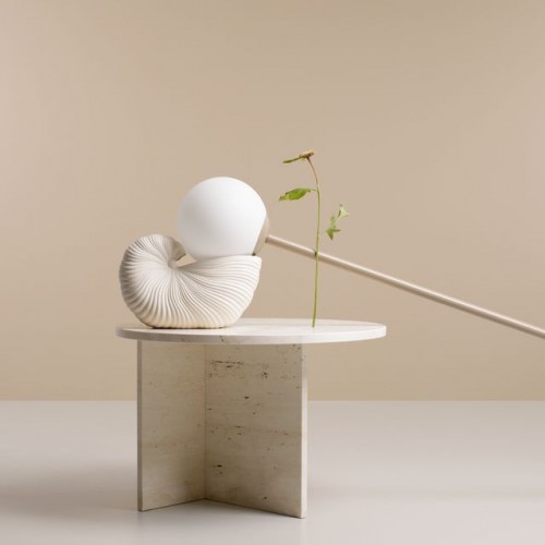 Модерна настолна лампа с минималистичен дизайн от серията Pinne, изработена от кремав цвят кръгла ме..