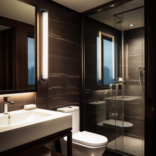 Съвременен светодиоден аплик от серията Hampton, изработен от цвят титан правоъгълна метална основа и набразден прозрачен стъклен разсейвател в цилиндрична форма с вграден 34W, 3000K LED. Стилно предложение за интериорното осветление на вашия хол, трапезария, спалня, коридор, хотел и ресторант.