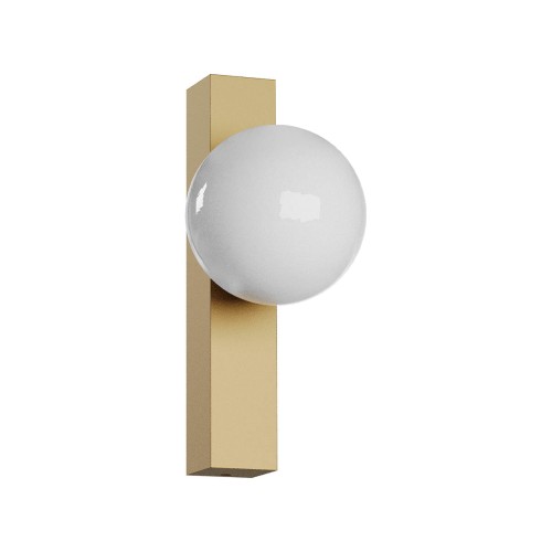 Стилен аплик с модерен дизайн от серията Goji, изработен от матово златист цвят метално и алуминиево тяло в правоъгълна форма и сферична опал бяла издухана стъклена чашка с вграден 6.3W 3000K LED. Качествена лампа, подходяща за осветлението във вашия хол, трапезария, спалня, коридор, офис, хотел и заведение.
