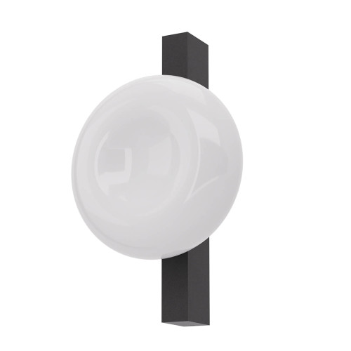 Модерен светодиоден аплик от серията Ethos, изработен от матово черен цвят алуминиева основа и опал бял разсейвател от издухано стъкло с вграден 9W LED и възможност за избор на цветната температура: 2700K/3000K. Тялото е с вграден димируем TRIAC драйвер. Стилно решение за комфортното и качествено осветление на вашия хол, трапезария, спалня, хотел и заведение.