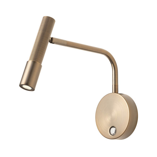 Съвременен светодиоден аплик от серията Drill, изработен от цвят античен бронз кръгла метална основа и рамо с подвижна цилиндрична алуминиева глава и прозрачен акрилен разсейвател с ъгъл на лъча: 45° и вграден 8W 3000K LED. Стилна лампа със сензорен ключ ON/OFF и сензорен димер, подходяща за интериорното осветление на вашия хол, спалня, кабинет, офис или хотел.