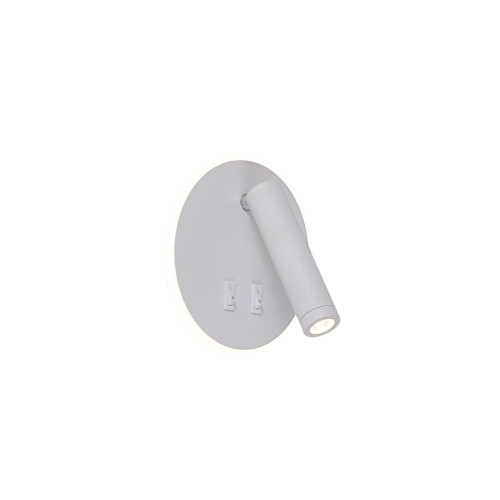 Функционален светодиоден аплик с модерен дизайн, изработен от бял цвят кръгло метално тяло със страничен бял пластмасов разсейвател и допълнително светодиодно метално рамо в цилиндрична форма. Оригинална лампа с два ключа ON/OFF, подходяща за интериорното осветление на вашата спалня, кабинет, офис или хотел.