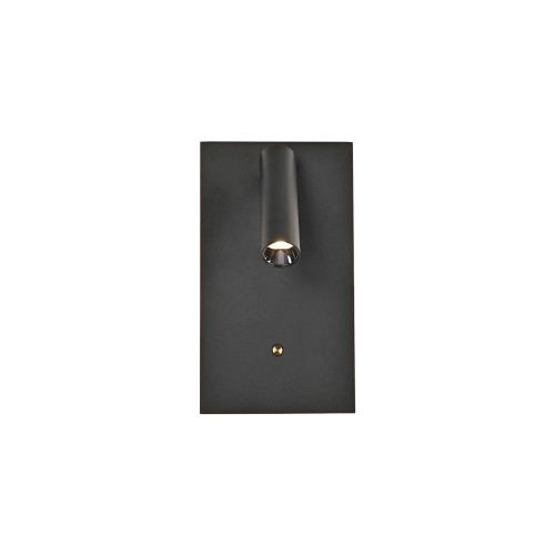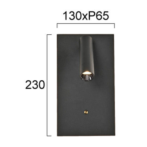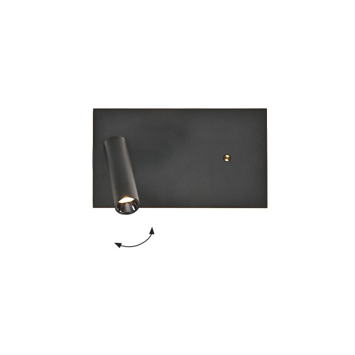 Модерен светодиоден аплик с функционален дизайн , изработен от черен цвят правоъгълно алуминиево тяло и подвижна алуминиева глава в цилиндрична форма с вграден 11W, 3000К LED и вграден димер ключ с докосване. Оригинално предложение за комфортното осветление във вашия хол, спалня, офис, хотел и заведение.