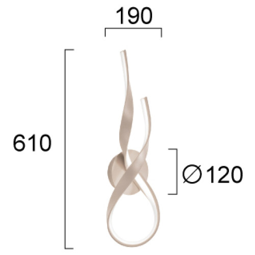 Модерен светодиоден аплик от серията Ribbon, изработен от бежов цвят метална основа и тяло от спираловидно извита метална лента и бял пластмасов разсейвател с вграден 21W 3000К LED. Оригинална лампа, подходяща за интериорното осветление на вашия хол, трапезария, спалня, хотел и заведение.