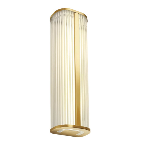 Оригинален светодиоден аплик за баня със стилен дизайн от серията Rigo, изработен от цвят месинг алуминиево тяло и разсейвател от прозрачни стъклени пръчки с вграден 20W LED и възможност за избор на цветната температура: 3000K/4000K, и с висока степен на влагозащита: IP44. Модерно решение за интериорното осветление във вашата баня и мокро помещение.