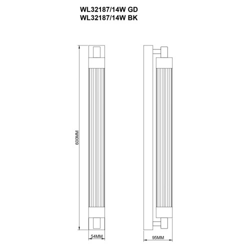 Размери: Широчина: 54мм, Височина: 600мм, Разстояние от стената: 95мм