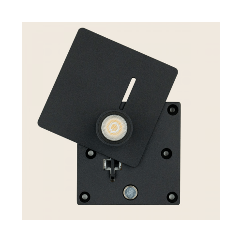 Оригинален светодиоден аплик за вграждане в стена, изработен от матово черен цвят квадратна метална основа и метална плоча с магнитно закрепване и цилиндрична алуминиева светодиодна глава с микропризматичен разсейвател и вграден 3W, 3000K LED. Модерна лампа с вграден прекъсвач ON/OFF, подходяща за осветление във вашата спалня, хол, офис, хотел и ресторант.