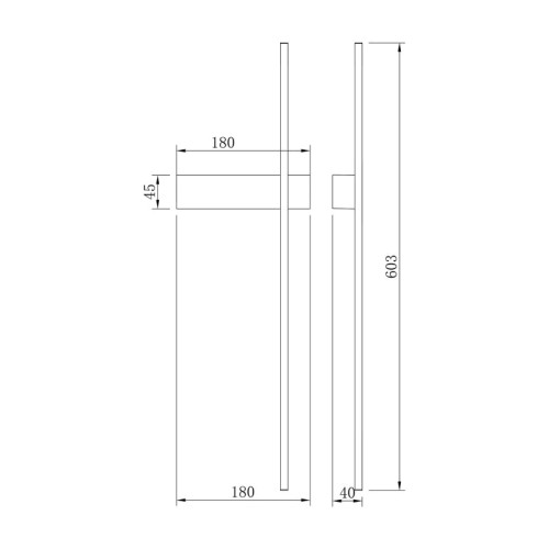 Размери: Височина: 600мм, Дължина: 180мм, Разстояние от стената: 40мм