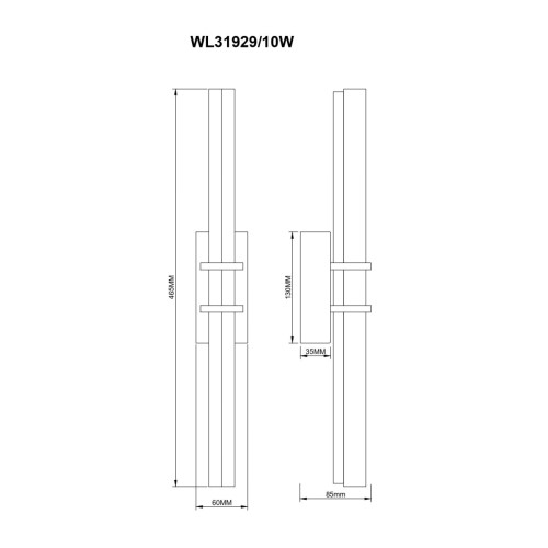 Размери: Височина: 465мм, Широчина: 60мм, Разстояние от стената: 85мм