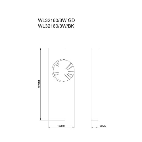 Размери: Височина: 322мм, Широчина: 30мм, Разстояние от стената: 120мм