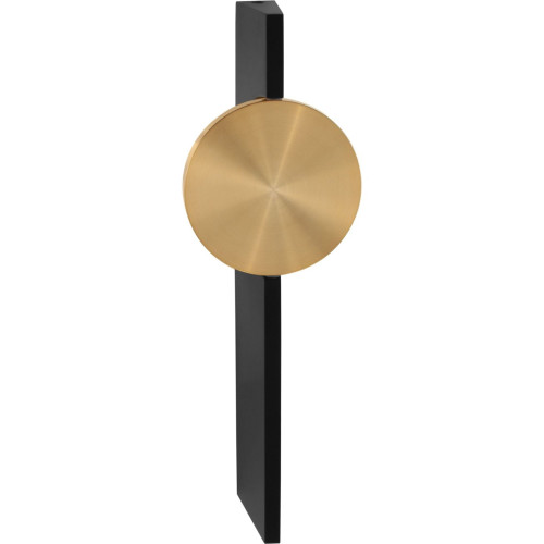Съвременен светодиоден аплик от серията Flux, изработен от черен цвят правоъгълно метално тяло със златист цвят метален диск и вграден 3W, 3000K LED с индиректно разпръскване на светлината. Стилно предложение за интериорното осветление на вашия хол, трапезария, спалня, коридор, хотел и заведение.