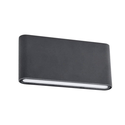 Елегантен и модерен led фасаден аплик, изработен от тъмно сив цвят правоъгълно алуминиево тяло със заоблени ъгли и сатен стъклен разсейвател светещ двустранно, с вграден светодиод от 13W LED, 3000K, 750lm, CRI>80 и висока степен на влагозащита: IP54. Аплик, който ще придаде уютна светлина и модерен стил на терасата, градината и фасадата на вашия дом, хотел или ресторант.