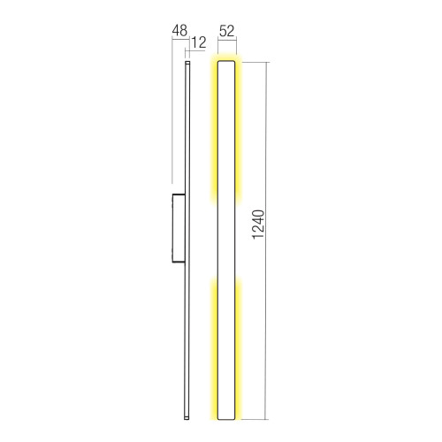 Размери: Височина: 1240мм, Ширина: 52мм, Разстояние от стената: 48мм