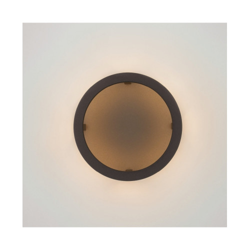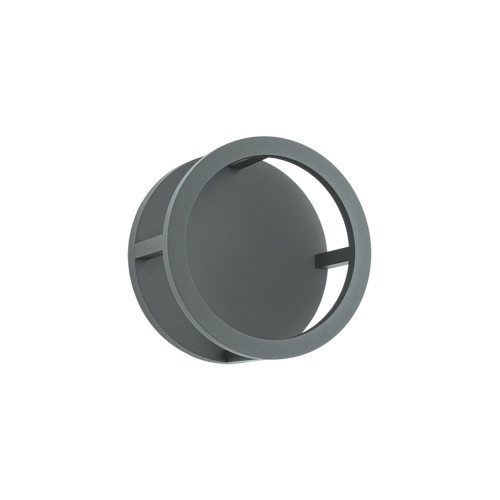 Стилен светодиоден фасаден аплик, изработен от цвят графит кръгло алуминиево тяло и поликарбонатен разсейвател с вграден 9.2W LED, 3000K. Оригинална лампа с висока степен на влагозащита: IP65, подходяща за осветлението на всяка фасада, тераса и веранда във вашия дом, вила, хотел и заведение.