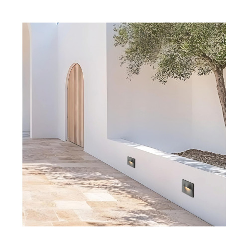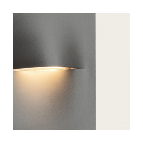 Модерна светодиодна фасадна луна за външен монтаж, изработена от цвят графит квадратно алуминиево тяло и поликарбонатен разсейвател с вграден светодиод от 3W LED, 3000K, и висока степен на влагозащита: IP65. Луна, която ще придаде уютна светлина и модерен стил на фасадата, оградата или стълбищата във вашия дом, хотел или ресторант.