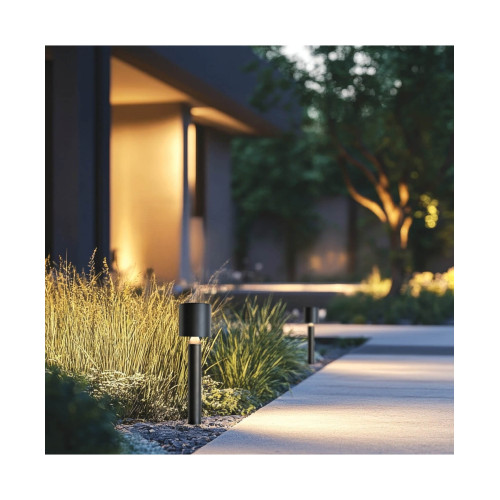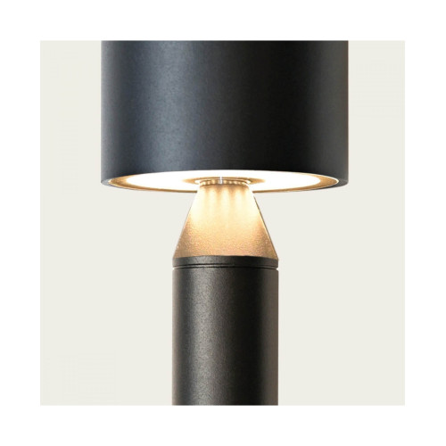 Оригинален светодиоден градински стълб, изработен от матово черен цвят алуминиево тяло и цилиндрична алуминиева глава със закален стъклен разсейвател и вграден 8W, 3000К LED. Стилна външна лампа с висока степен на влагозащита: IP65, подходяща за качественото и комфортно осветление на градината, парка и алеята във вашия дом, вила, хотел и заведение.