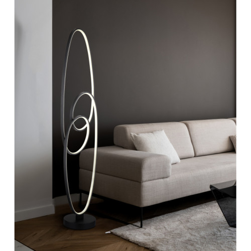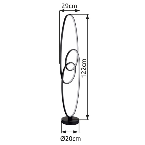 Модерен светодиоден лампион от серията Spira, изработен от черен мат цвят метална основа и спираловидно извито алуминиево тяло с опал пластмасов разсейвател и вграден 39W LED с възможност за избор на цветната температура от 2700К, 4000К до 6500К. Стилна лампа, подходяща за осветлението на вашия хол, трапезария, спалня, офис, хотел и заведение.