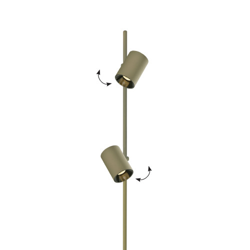 Модерен светодиоден лампион с функционален дизайн от серията Melina, изработен от маслинено зелен цвят метална основа с рамо и две подвижни алуминиеви глави в цилиндрична форма с вграден 13W, 3000К LED и вграден димер. Оригинално предложение за комфортното осветление във вашия хол, спалня, офис, хотел и заведение.