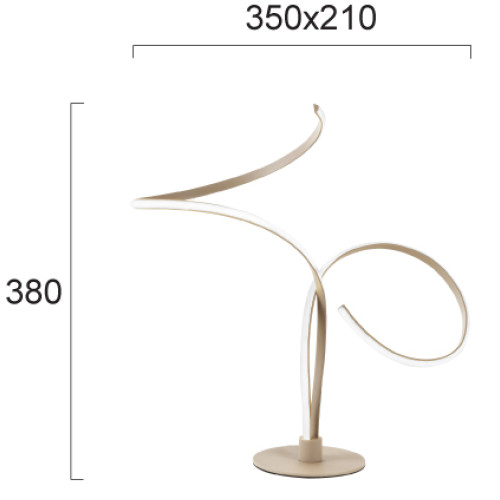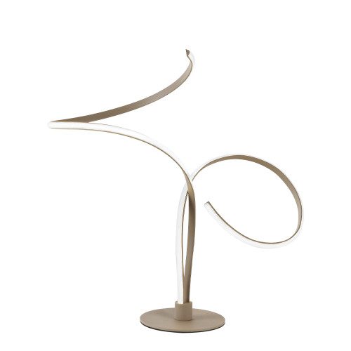 Стилна светодиодна настолна лампа от серията Ivana, изработена от бежов цвят метална основа и тяло от спираловидно извити метални ленти с вграден 12W 3000К LED. Модерно решение за интериорното осветление на вашия хол, трапезария, спалня, хотел и заведение.