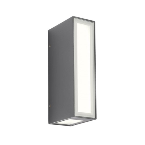 Елегантен и модерен фасаден светодиоден аплик от серията IVAR, изработен от антрацит цвят правоъгълно алуминиево тяло и бял опал пластмасов разсейвател с вграден светодиод 8W, 3000K, 583lm, светещ тристранно. Аплик, който ще придаде уютна светлина и модерен стил на фасадата, верандата или терасата на вашия дом, хотел или ресторант.