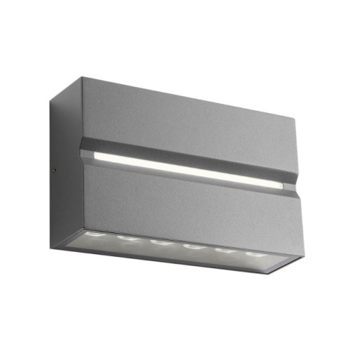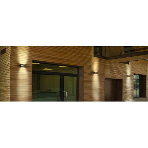 Елегантен светодиоден фасаден аплик от серията Mitic, изработен от антрацит цвят правоъгълна алуминиева основа и прозрачни стъклени разсейвателя светещи директно и индиректно двустранно с тесен 15 градуса. Аплик, който ще придаде уютна светлина и модерен стил на градината и фасадата на вашия дом, хотел или ресторант.