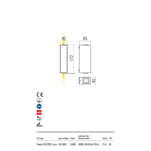 Максимална мощност: 2 x 5,84W, 3000K, LED, 176lm, CRI>80 (вкл.)