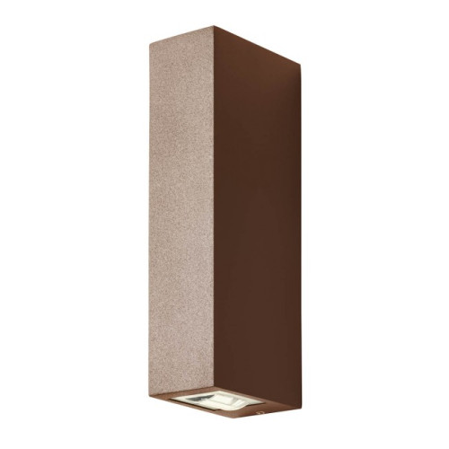 Модерен светодиоден фасаден аплик от серията Ace, изработен от тъмно кафяв цвят правоъгълно алуминиево тяло и прозрачен акрилен разсейвател, с вграден 2 х 5,84W, 4000K и оптика от 2 градуса, светещ двустранно. Лампа с висока степен на влагозащита: IP54 и степен на удароустойчивост: IK06. Оригинална лампа, която ще придаде уютна светлина и модерен стил на градината, входната врата, верандата и фасадата на вашия дом, хотел или ресторант.