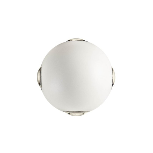 Оригинален светодиоден фасаден аплик от серията Milestone, изработен от матово бял цвят полусферично алуминиево тяло и четири лещи с четиристранно разпръскване на светлината под ъгъл от 90° и с вграден 12W LED, 3000К. Лампата е с включен драйвер. Стилна лампа с висока степен на влагозащита: IP54 и степен на удароустойчивост: IK06, която ще придаде комфортна светлина и модерен стил на фасада, верандата и терасата във вашия дом, хотел или ресторант.