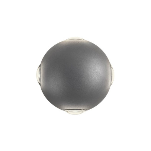 Оригинален светодиоден фасаден аплик от серията Milestone, изработен от тъмно сив цвят полусферично алуминиево тяло и четири лещи с четиристранно разпръскване на светлината под ъгъл от 90° и с вграден 12W LED, 3000К. Лампата е с включен драйвер. Стилна лампа с висока степен на влагозащита: IP54 и степен на удароустойчивост: IK06, която ще придаде комфортна светлина и модерен стил на фасада, верандата и терасата във вашия дом, хотел или ресторант.