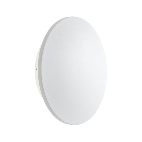 Модерен светодиоден фасаден аплик от серията Tanit, изработен от матово бял цвят кръгло алуминиево тяло и сатениран поликарбонатен разсейвател с вграден 18W LED, 3000К и индиректно разпръскване на светлината. Аплик с висока степен на влагозащита: IP54 и степен на удароустойчивост: IK06, който ще придаде уютна светлина и модерен стил на градината и фасадата на вашия дом, хотел или ресторант.