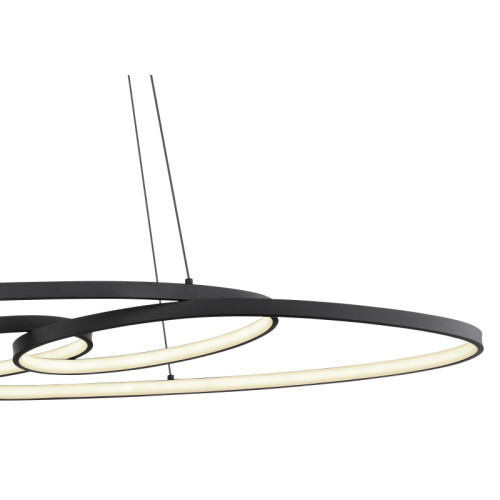 Модерен светодиоден пендел от серията Spira, изработен от черен мат цвят метална основа и спираловидно извито алуминиево тяло с опал пластмасов разсейвател и вграден 39W LED с възможност за избор на цветната температура от 2700К, 4000К до 6500К. Стилна лампа, подходяща за осветлението на вашия хол, трапезария, спалня, офис, хотел и заведение.