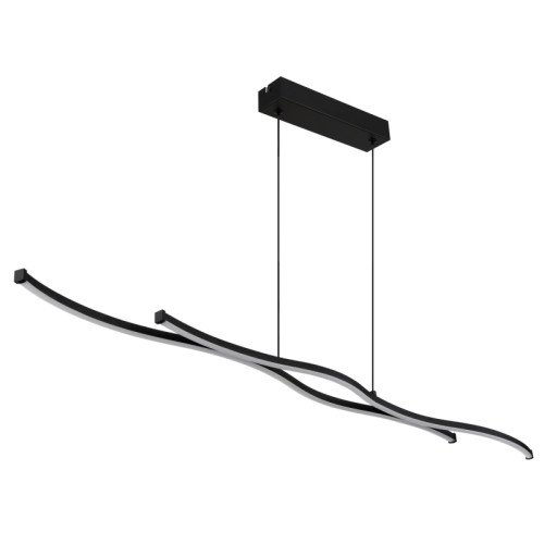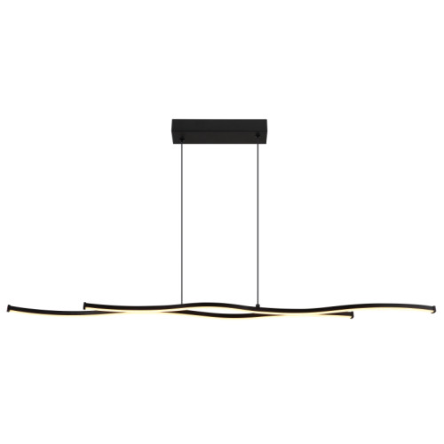 Стилен светодиоден пендел от серията Boyd, изработен от черен мат цвят метална основа и две спираловидно извити алуминиеви тела с бял пластмасов разсейвател и вграден 30W 3000К LED. Модерна лампа, подходяща за осветлението на вашия хол, трапезария, спалня, офис, хотел и заведение.