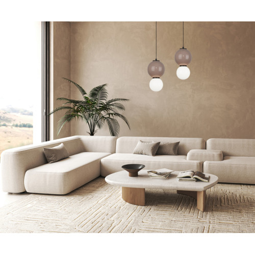 Оригинален светодиоден пендел от серията Pieve, изработен от черна метална основа и сферична форма декоративно керамично тяло в бежов цвят и опал стъклен разсейвател с вграден 5W 3000K LED. Стилна висяща лампа, подходяща за модерното осветление на вашия хол, трапезария, спалня, хотел и заведение.