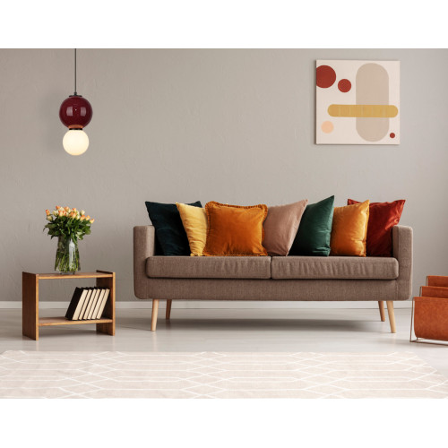 Оригинален светодиоден пендел от серията Pieve, изработен от черна метална основа и сферична форма декоративно керамично тяло в лилав цвят и опал стъклен разсейвател с вграден 5W 3000K LED. Стилна висяща лампа, подходяща за модерното осветление на вашия хол, трапезария, спалня, хотел и заведение.