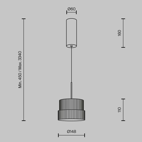 Размери: Височина: 450-3340мм, Диаметър: 148мм, Височина на чашката: 110мм